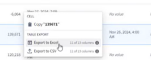 If you need to export data from Fuel Hub, right click and select Export to Excel or Export to CSV.